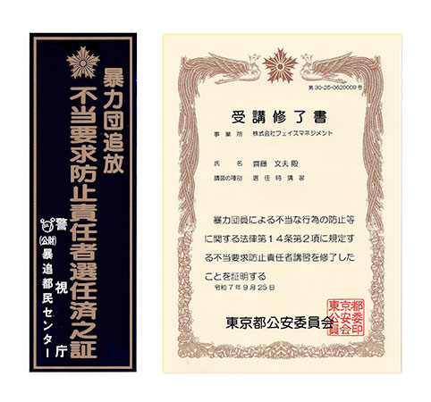 不当な要求には毅然と応対して速やかに弁護士や警察・暴力団追放運動推進都民センターに相談をおこないます。