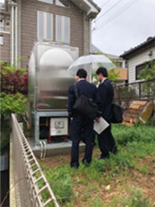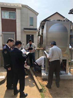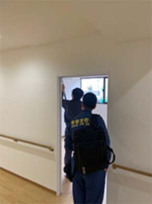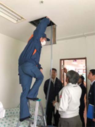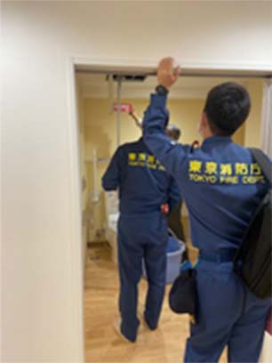 管轄消防機関の検査を受けるにあたり、消防設備士の有資格者が立会い対応いたします。一部の写真ではありますが、消防検査の様子をご覧いただけます。