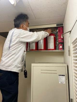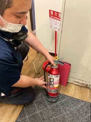 消防用設備点検の様子をご覧いただけます。